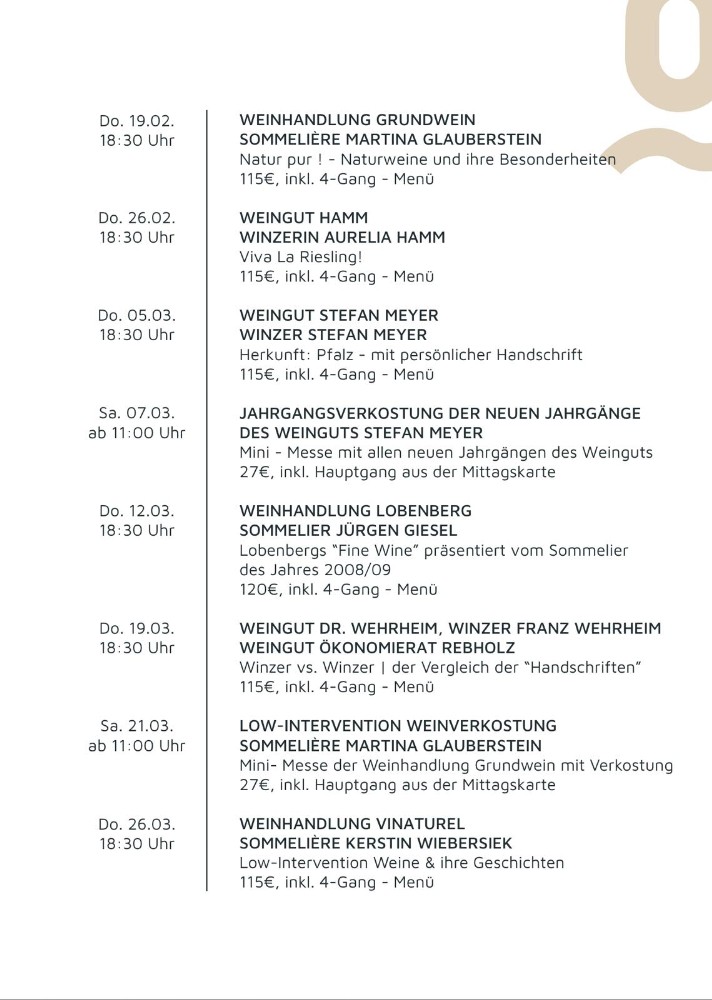 Unsere Winzer und Weinhändler präsentieren ihre Weine begleitet von einfallsreichen Menüs aus der Kredo Küche.